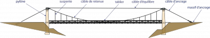 Un pont suspendu est un pont dont le tablier est fixé à des suspentes et à des câbles posés sur des pylônes.